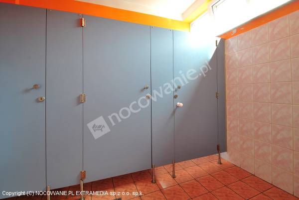 Prysznice i toalety w budynku z wejściem bezpośrednio z kempingu.